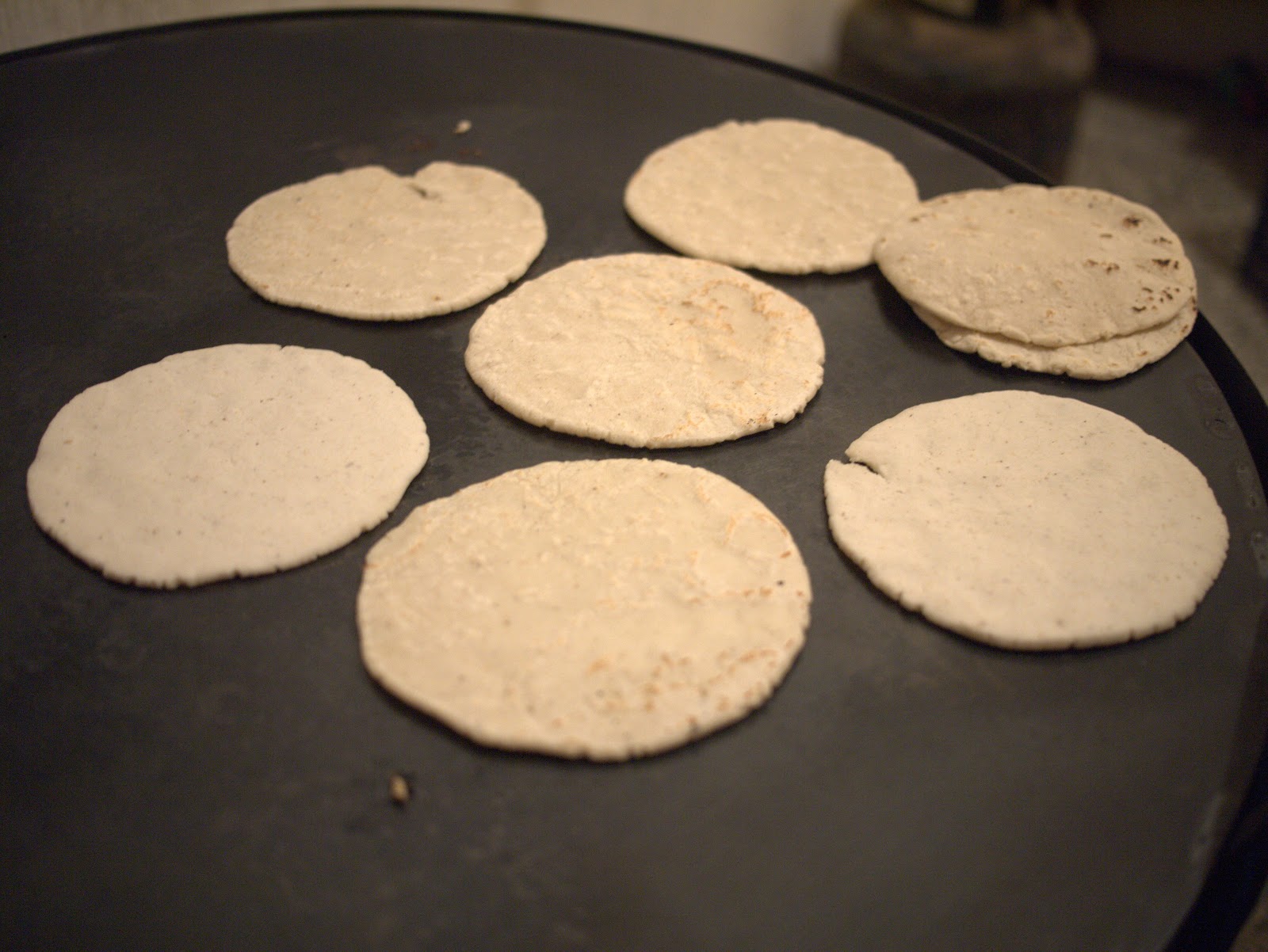Unlike the corn tortillas in the states, these are quite thick and are made entirely of corn and corn paste (no wheat or white flour). When we get them from the shop they're always warm and smell amazing.